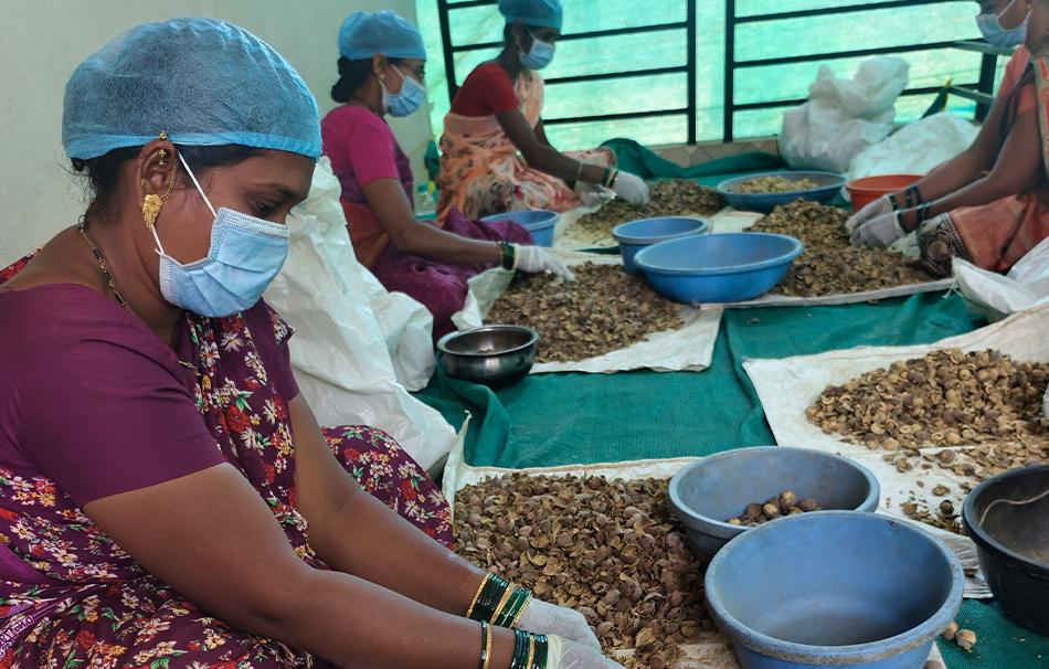 We work closely with tribal communities across Maharashtra as well as other states of India, helping them set up -community-run processing centres, reduce middlemen, and ensure their traditional knowledge and expertise gets the value it deserves, along with ensuring long-term forest protection. Further national and international sustainability certifications enhance the value derivation from these products for them, whilst building their capacity in sustainable harvesting, processing and packaging.